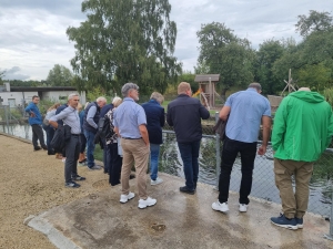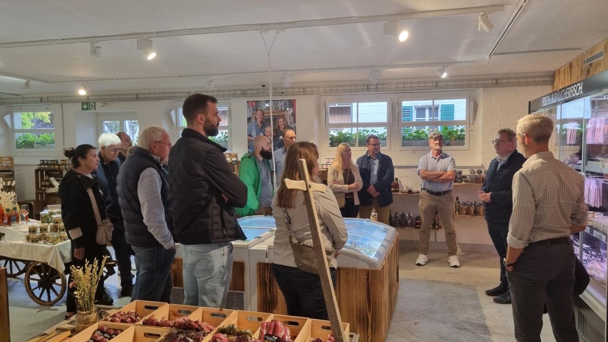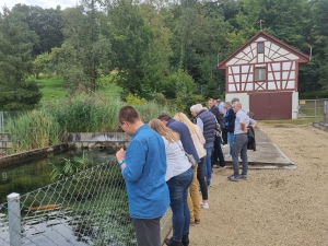 Bei schönem Augustwetter trafen sich etliche Vereinsmitglieder direkt beim Kundelfingerhof in Schlatt. Martin Junker, Geschäftsführer des Quellparks Kundelfingerhof, nahm uns in Empfang und begann seine rund 45-minütige Führung mit ein paar Erläuterungen zur eigenen Quelle sowie den verschiedenen Fischarten des Parks (u.a. Karpfen, Weissfische, Hechte, Zander oder Salmoniden). Dabei präsentierte er erstaunliche Zahlen zur Fischzucht, den Vertrieb und zur ganzen Produktion. Weitere Anekdoten und Geschichten rund um den Hof, die Kunden sowie die ganze Hofmanufaktur erfuhren die Teilnehmenden dann bei der Heissräucheranlage. Den Abschluss fand die gelungene und spannende Besichtigung schliesslich im eigenen Hofladen, wo zahlreiche Fischprodukte (u.a. auch Fischburger oder Cervelat aus Fisch) und viele andere, regionale Spezialitäten feilgeboten werden.