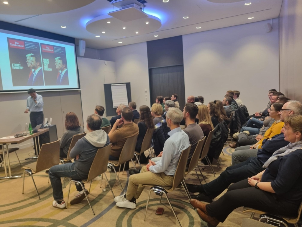 Für einmal fanden sich wieder etwas mehr als 30 Personen zum Referat ein. Man merkte auch anhand der späteren Fragen, dass das Thema USA und insbesondere die Entwicklungen unter Präsident Donald Trump faszinieren – auf die gute wie auf die schlechte Seite. So präsentiere uns Referent und Amerika-Kenner Alfred Mettler denn auch Punktelisten, welche pro und contra die Zukunft von Amerika sprechen. Er veranschaulichte die Aspekte mit ausgesuchten Beispielen aus der Wirtschaft, Politik und Gesellschaft, verbunden auch mit persönlichen Anekdoten. Höhepunkt bildete sicherlich auch die Buchvergabe, bekam doch jede/r Teilnehmende ein signiertes Exemplar des gleichnamigen Buches zum Referat.